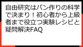 自由研究 自由研究はパン作りの科学で決まり!初心者から上級者まで役立つ実験レシピと疑問解決FAQ 【自由研究】パン作りの科学!小学生から大人まで楽しめる実験レシピ&徹底考察ガイド パン作りの奥深さに触れる自由研究へようこそ! この記事では、パンが膨らむ秘密から、おいしいパン作りのコツまで、科学的な視点から徹底的に解説します。 初心者の方... 2025.08.24 自由研究
