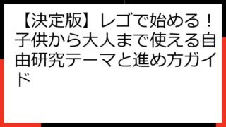 自由研究 【決定版】レゴで始める!子供から大人まで使える自由研究テーマと進め方ガイド 【保存版】レゴで始める!小学生から大人まで夢中になる自由研究アイデア集 レゴブロックで、あなたの「知りたい」「作りたい」を形にしませんか? このブログでは、レゴを使った自由研究のテーマ設定から、具体的な進め方、さらに応用テクニックまで、初心... 2025.08.20 自由研究