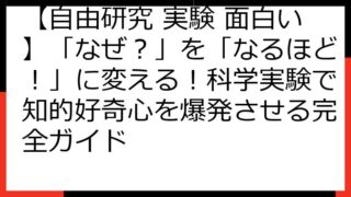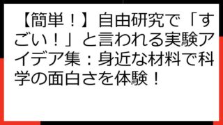 自由研究 【自由研究 実験 面白い】「なぜ?」を「なるほど!」に変える!科学実験で知的好奇心を爆発させる完全ガイド 【自由研究】「面白い!」と叫びたくなる!科学実験で知的好奇心を爆発させる方法 「自由研究、何をやろうかな?」とお悩みですか? 「ただ調べるだけじゃつまらない…」と感じていませんか? この記事では、あなたが「面白い!」と夢中になる、とっておき... 2025.08.20 自由研究