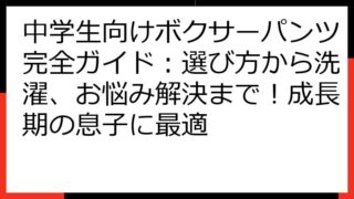 中学生 中学生向けボクサーパンツ完全ガイド:選び方から洗濯、お悩み解決まで!成長期の息子に最適 【徹底比較】中学生向けボクサーパンツ選びの決定版!成長期の息子に最適な一枚を見つけよう 中学生のお子さんのボクサーパンツ選び、悩んでいませんか? 成長期の体は変化が大きく、どんなボクサーパンツを選べば良いのか迷う方も多いはずです。 この記事... 2025.08.25 中学生