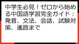中学生 中学生必見!ゼロから始める中国語学習完全ガイド:発音、文法、会話、試験対策、進路まで ゼロから始める!中学生のための中国語学習完全ガイド:発音、文法、会話、試験対策まで 中国語学習に興味があるけど、何から始めたらいいかわからない…。 そんな中学生の皆さん、ご安心ください。 この記事では、ゼロから中国語を学び始める皆さんのため... 2025.08.25 中学生