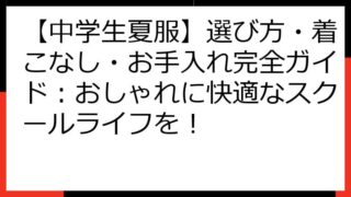 中学生 【中学生夏服】選び方・着こなし・お手入れ完全ガイド:おしゃれに快適なスクールライフを! 【2024年最新】中学生夏服完全ガイド:おしゃれで快適な着こなし&選び方 夏が近づき、中学生の皆さんは夏服の準備を始める時期ですね。 学校生活を快適に、そしておしゃれに過ごすためには、夏服選びがとても重要です。 この記事では、中学生の皆さん... 2025.08.25 中学生