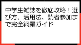中学生 中学生雑誌を徹底攻略!選び方、活用法、読者参加まで完全網羅ガイド 【2024年最新版】中学生雑誌徹底ガイド:選び方から活用法、人気雑誌ランキングまで 中学生の皆さん、こんにちは! 雑誌って、おしゃれや流行の最先端を知るだけでなく、勉強や将来のヒントも隠されている、宝箱のような存在ですよね。 でも、たくさん... 2025.08.25 中学生