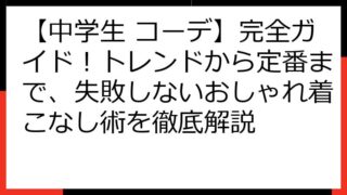 中学生 【中学生 コーデ】完全ガイド!トレンドから定番まで、失敗しないおしゃれ着こなし術を徹底解説 【中学生必見】絶対おしゃれ!失敗しないトレンドコーデ術&着こなしのコツ この記事では、 中学生のあなたが、 「今日のコーデ、どうしよう?」 「もっとおしゃれになりたい!」 と悩む気持ちに寄り添い、 失敗しないトレンドコーデ術から、 着こなし... 2025.08.15 中学生