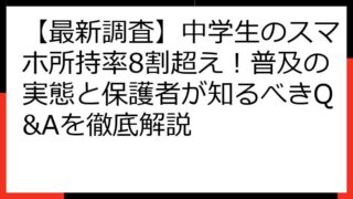中学生 【最新調査】中学生のスマホ所持率8割超え!普及の実態と保護者が知るべきQ&Aを徹底解説 【最新調査】中学生のスマホ所持率8割超え!データから見る実態と保護者が知るべきこと この記事では、現代の中学生にとって不可欠な存在となったスマートフォンに焦点を当てます。。最新の調査データに基づき、驚くべき所持率の実態を掘り下げます。。なぜ... 2025.08.15 中学生