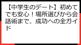 中学生 【中学生のデート】初めてでも安心!場所選びから会話術まで、成功への全ガイド 【中学生必見】初めてのデートを成功させる!基本から応用まで徹底解説 初めてのデート、ドキドキしますよね。 「何を着ていけばいい?」「どんな話をすれば盛り上がる?」「どこに行けば喜んでもらえる?」 そんな不安や疑問を抱えている中学生の皆さんへ... 2025.08.15 中学生