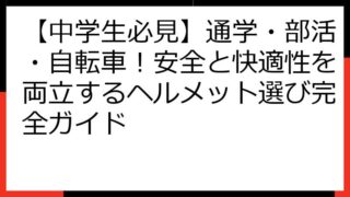 中学生 【中学生必見】通学・部活・自転車!安全と快適性を両立するヘルメット選び完全ガイド 【中学生必見】通学・部活・自転車!安全と快適性を両立するヘルメット選び完全ガイド この記事は、毎日の通学や部活動、自転車に乗る機会が多い中学生の皆さん、そしてその保護者の皆様に向けて、安全で快適なヘルメット選びを徹底的にサポートする内容とな... 2025.08.15 中学生