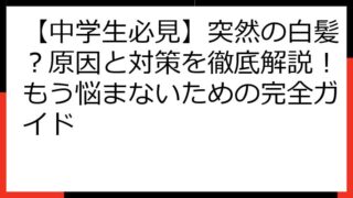 中学生 【中学生必見】突然の白髪?原因と対策を徹底解説!もう悩まないための完全ガイド 【中学生必見】突然の白髪?原因と対策を徹底解説!もう悩まないための完全ガイド 中学生になって、鏡を見たときに突然白髪を見つけて驚いた経験はありませんか?. 「なぜ自分だけ?」「このまま増えていくのでは?」と不安に思うこともあるかもしれません... 2025.08.15 中学生