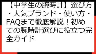中学生 【中学生の腕時計】選び方・人気ブランド・使い方・FAQまで徹底解説!初めての腕時計選びに役立つ完全ガイド 【中学生必見】初めての腕時計選び!失敗しないための完全ガイド&おすすめモデル 初めての腕時計選びに悩んでいる中学生の皆さん、こんにちは。 腕時計は、時間を確認するだけでなく、おしゃれを楽しむための大切なアイテムでもあります。 この記事では、... 2025.08.15 中学生