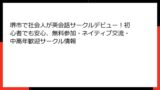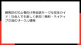 - コミュニティベースのサークル:鶴見中央地域ケアプラザなどで開催されるサークルでは、初回参加を無料とし、雰囲気や参加者のレベルを確認できる機会を設けています。例えば、月に2回、金曜日の夜(18:30~20:00)に開催されるサークルでは、初回見学が無料で、ネイティブスピーカー(例:イギリス人講師)との会話が体験できます。