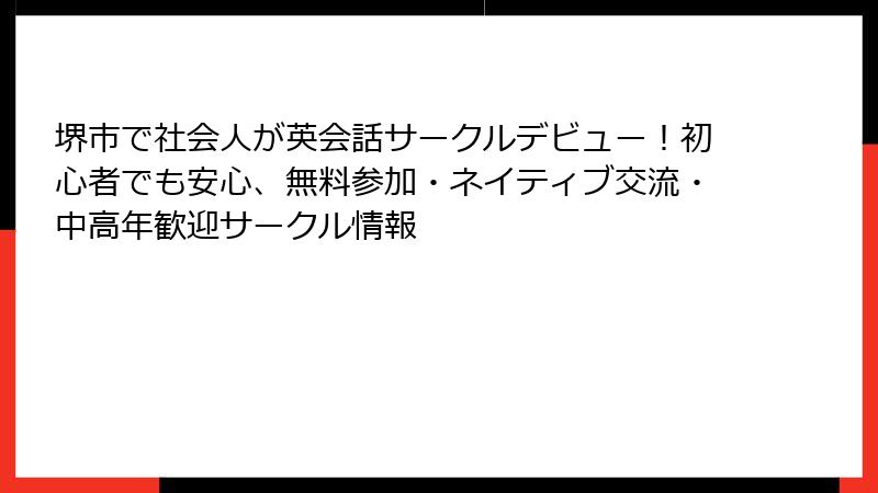 堺市には、シニア層が参加しやすい英会話サークルやイベントがいくつかあります。以下は、代表的なサークルの特徴をまとめた表です。