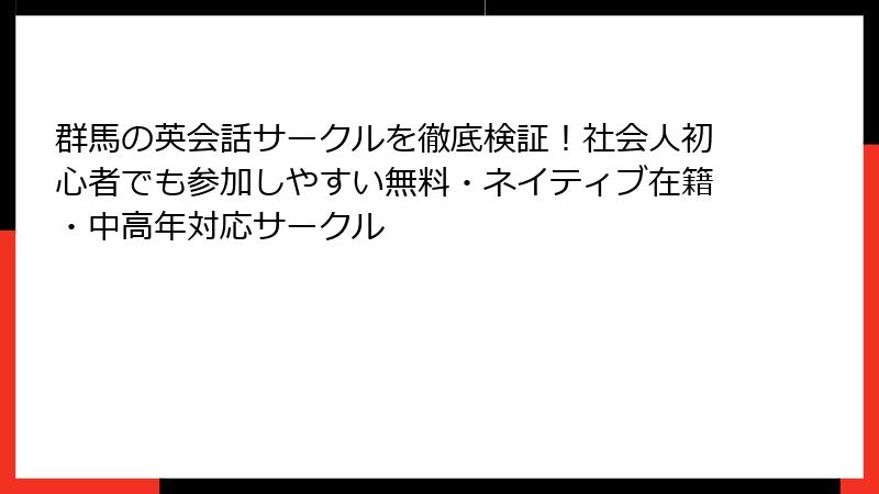群馬の英会話サークルは、中高年・シニアにとって、英語と仲間を楽しむ絶好の場。高崎の駅近イベント、前橋の無料ミートアップ、桐生のアットホーム教室、オンラインの気軽さ…選択肢は豊富です。私も50代の友人と参加し、「英語で笑い合えるなんて!」と感動。あなたも、簡単なフレーズから始めて、群馬で英語の新章を。次回のミーティングで、シニアの笑顔が増えることを願っています!