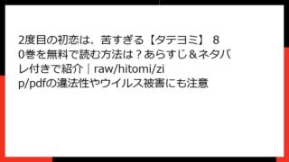 2度目の初恋は、苦すぎる【タテヨミ】 2度目の初恋は、苦すぎる【タテヨミ】 80巻を無料で読む方法は?あらすじ&ネタバレ付きで紹介|raw/hitomi/zip/pdfの違法性やウイルス被害にも注意 2度目の初恋は、苦すぎる【タテヨミ】 80巻 あらすじ 「2度目の初恋は、苦すぎる【タテヨミ】」は、中国の小説「难哄」を原作とした、切なくも心温まるラブストーリーを描いたタテヨミ漫画です。80巻では、主人公・西園寺伊織の過去が明らかにさ... 2025.08.29 2度目の初恋は、苦すぎる【タテヨミ】女性マンガ