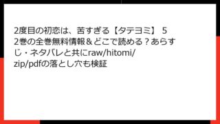 2度目の初恋は、苦すぎる【タテヨミ】 2度目の初恋は、苦すぎる【タテヨミ】 52巻の全巻無料情報&どこで読める?あらすじ・ネタバレと共にraw/hitomi/zip/pdfの落とし穴も検証 「2度目の初恋は、苦すぎる【タテヨミ】」52巻のあらすじ 「2度目の初恋は、苦すぎる【タテヨミ】」は、切なくも美しいラブストーリーが魅力の中国発のタテヨミ漫画です。原作は中国の小説「难哄」で、Netflixで配信中の中国ドラマ「あの日の... 2025.08.28 2度目の初恋は、苦すぎる【タテヨミ】女性マンガ