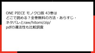 ONE PIECE モノクロ版 ONE PIECE モノクロ版 43巻はどこで読める?全巻無料の方法・あらすじ・ネタバレとraw/hitomi/zip/pdfの違法性も比較調査
