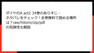 ダイヤのA act2 ダイヤのA act2 34巻のあらすじ・ネタバレをチェック!全巻無料で読める場所は?raw/hitomi/zip/pdfの危険性も解説