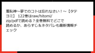 羞恥神~夢でのコトは忘れなさい!~【タテヨミ】 羞恥神~夢でのコトは忘れなさい!~【タテヨミ】 63巻はどこで読める?全巻無料の方法・あらすじ・ネタバレとraw/hitomi/zip/pdfの違法性も比較調査 羞恥神~夢でのコトは忘れなさい!~【タテヨミ】63巻 あらすじ詳細 「羞恥神~夢でのコトは忘れなさい!~」は、恋愛成就をテーマにしたちょいエロラブコメマンガで、独特の設定とユーモアが魅力の作品です。63巻では、主人公・伏見晴樹とヒロイン... 2025.08.19 羞恥神~夢でのコトは忘れなさい!~【タテヨミ】青年マンガ
