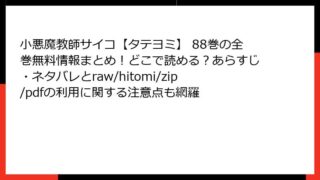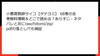 小悪魔教師サイコ【タテヨミ】 小悪魔教師サイコ【タテヨミ】 88巻の全巻無料情報まとめ!どこで読める?あらすじ・ネタバレとraw/hitomi/zip/pdfの利用に関する注意点も網羅 小悪魔教師サイコ【タテヨミ】88巻 あらすじ 『小悪魔教師サイコ【タテヨミ】』は、三石メガネによる原作小説を基にしたスリリングなサイコサスペンス漫画で、taskey STUDIOによるフルカラーの縦スクロール形式が特徴です。88巻では、... 2025.09.06 小悪魔教師サイコ【タテヨミ】青年マンガ