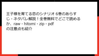 女性マンガ 王子様を育てる恋のシナリオ 6巻のあらすじ・ネタバレ解説!全巻無料でどこで読めるか、raw・hitomi・zip・pdfの注意点も紹介 王子様を育てる恋のシナリオ 6巻:本当の自分を見つけ、愛を深めるクライマックス こんにちは、漫画好きの皆さん! 今日は、IS先生原作、雨庭有沙先生作画による人気ラブストーリー『王子様を育てる恋のシナリオ』の6巻について詳しくお話しします... 2025.09.07 女性マンガ王子様を育てる恋のシナリオ