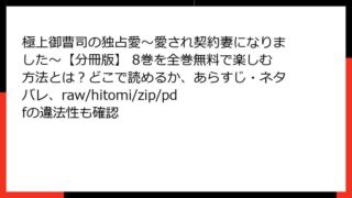 女性マンガ 極上御曹司の独占愛~愛され契約妻になりました~【分冊版】 8巻を全巻無料で楽しむ方法とは?どこで読めるか、あらすじ・ネタバレ、raw/hitomi/zip/pdfの違法性も確認 極上御曹司の独占愛~愛され契約妻になりました~【分冊版】8巻 あらすじ詳細 「極上御曹司の独占愛~愛され契約妻になりました~【分冊版】8巻」は、若菜モモ原作、水沢友希作画によるマーマレードコミックスシリーズの人気恋愛漫画の一編です。この... 2025.09.05 女性マンガ極上御曹司の独占愛~愛され契約妻になりました~【分冊版】