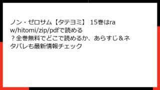 BL ノン・ゼロサム【タテヨミ】 15巻はraw/hitomi/zip/pdfで読める?全巻無料でどこで読めるか、あらすじ&ネタバレも最新情報チェック ノン・ゼロサム【タテヨミ】15巻 あらすじ 韓国発のBL漫画「ノン・ゼロサム【タテヨミ】」は、複雑な人間関係と心の闇を描いた作品として、多くの読者を引きつけています。15巻では、主人公ユン・ヘウォンを中心に、ソ・ヘヨン、コ・テギョム、ジ... 2025.08.29 BLノン・ゼロサム【タテヨミ】