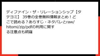BL ディファイン・ザ・リレーションシップ【タテヨミ】 39巻の全巻無料情報まとめ!どこで読める?あらすじ・ネタバレとraw/hitomi/zip/pdfの利用に関する注意点も網羅 ディファイン・ザ・リレーションシップ【タテヨミ】 39巻の魅力的なあらすじを探求 こんにちは、漫画好きの皆さん! 今日は、BLオメガバースジャンルの人気作として知られる『ディファイン・ザ・リレーションシップ【タテヨミ】』の39巻について... 2025.09.08 BLディファイン・ザ・リレーションシップ【タテヨミ】