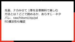 BL 先輩、ナカみせて 1巻を全巻無料で楽しむ方法とは?どこで読めるか、あらすじ・ネタバレ、raw/hitomi/zip/pdfの違法性も確認 「先輩、ナカみせて」1巻のあらすじを徹底解説! 「先輩、ナカみせて」は、宮野川ゆうきによる日本のボーイズラブ(BL)漫画で、独特のユーモアと心温まるストーリー展開が魅力の作品です。コミックシーモアやその他の電子書籍プラットフォームで配信... 2025.09.07 BL先輩、ナカみせて
