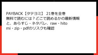 BL PAYBACK【タテヨミ】 21巻を全巻無料で読むには?どこで読めるかの最新情報と、あらすじ・ネタバレ、raw・hitomi・zip・pdfのリスクも確認 PAYBACK【タテヨミ】21巻のあらすじ詳解 「PAYBACK【タテヨミ】」は、fujokingとSAMKによる人気のボーイズラブ(BL)マンガで、復讐と愛、芸能界の裏側をテーマにした重厚なストーリーが魅力の作品です。21巻では、主人... 2025.09.05 BLPAYBACK【タテヨミ】