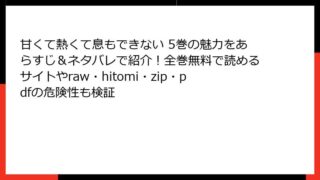 BL 甘くて熱くて息もできない 5巻の魅力をあらすじ&ネタバレで紹介!全巻無料で読めるサイトやraw・hitomi・zip・pdfの危険性も検証 『甘くて熱くて息もできない』5巻のあらすじを徹底解説 『甘くて熱くて息もできない』は、蜂巣による人気ボーイズラブ(BL)コミックで、独特な設定と魅力的なキャラクターたちの恋愛模様が読者を引きつけています。5巻では、専門学生の絢斗と理央の... 2025.09.06 BL甘くて熱くて息もできない