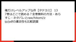 俺だけレベルアップな件【タテヨミ】 俺だけレベルアップな件【タテヨミ】 137巻はどこで読める?全巻無料の方法・あらすじ・ネタバレとraw/hitomi/zip/pdfの違法性も比較調査 俺だけレベルアップな件【タテヨミ】 137巻のあらすじ:影の君主の覚醒と最終決戦の幕開け こんにちは、漫画好きのブロガーです! 今日は、韓国発の超人気ウェブトゥーン『俺だけレベルアップな件【タテヨミ】』の137巻について、詳しくあらすじ... 2025.09.09 俺だけレベルアップな件【タテヨミ】青年マンガ