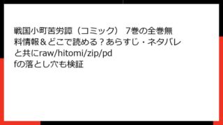 戦国小町苦労譚(コミック) 戦国小町苦労譚(コミック) 7巻の全巻無料情報&どこで読める?あらすじ・ネタバレと共にraw/hitomi/zip/pdfの落とし穴も検証 戦国小町苦労譚(コミック)7巻の魅力的なあらすじを徹底解説! こんにちは、歴史とタイムスリップ要素が大好きな漫画ファンです! 今日は、『戦国小町苦労譚(コミック)』の7巻について詳しくお話ししたいと思います。この作品は、農業高校の女子高... 2025.09.09 戦国小町苦労譚(コミック)青年マンガ