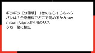 ギラギラ【分冊版】 ギラギラ【分冊版】 1巻のあらすじ&ネタバレは?全巻無料でどこで読めるか&raw/hitomi/zip/pdf利用のリスクも一緒に検証 『ギラギラ【分冊版】 1巻』あらすじ詳細 『ギラギラ【分冊版】 1巻』(原作:滝直毅、作画:土田世紀)は、かつて六本木のホスト界で頂点を極めた男が、家族のために再び夜の世界に飛び込む姿を描いた青年漫画です。『ビッグコミックスペリオール』... 2025.09.07 ギラギラ【分冊版】青年マンガ