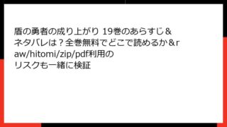 盾の勇者の成り上がり 盾の勇者の成り上がり 19巻のあらすじ&ネタバレは?全巻無料でどこで読めるか&raw/hitomi/zip/pdf利用のリスクも一緒に検証 『盾の勇者の成り上がり』19巻 あらすじ詳細 『盾の勇者の成り上がり』19巻は、藍屋球によるコミカライズ版で、アネコユサギ原作の人気ライトノベルの壮大な物語がさらに展開する巻です。主人公・岩谷尚文(盾の勇者)が、異世界での過酷な試練を乗... 2025.09.07 盾の勇者の成り上がり青年マンガ