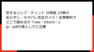 少女マンガ 恋するリップ・ティント 分冊版 10巻のあらすじ・ネタバレ完全ガイド!全巻無料でどこで読めるか?raw・hitomi・zip・pdfの落とし穴に注意 『恋するリップ・ティント 分冊版 10巻』の魅力に迫る! 詳細あらすじと感想 みなさん、こんにちは! 少女漫画大好きブロガーのあかりです。今日は、楠なな先生の人気作品『恋するリップ・ティント』の分冊版10巻について、詳しくお話ししたいと... 2025.09.09 少女マンガ恋するリップ・ティント 分冊版