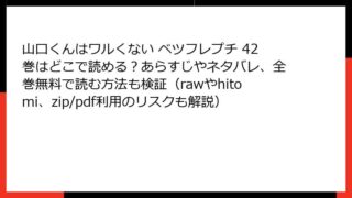 少女マンガ 山口くんはワルくない ベツフレプチ 42巻はどこで読める?あらすじやネタバレ、全巻無料で読む方法も検証(rawやhitomi、zip/pdf利用のリスクも解説) 『山口くんはワルくない ベツフレプチ』42巻の魅力に迫る! 青春ラブストーリーの最新展開を詳しく解説 こんにちは、漫画好きの皆さん! 今日は、斉木優先生の人気作『山口くんはワルくない ベツフレプチ』42巻のあらすじを、たっぷり詳しくお届... 2025.09.09 少女マンガ山口くんはワルくない ベツフレプチ
