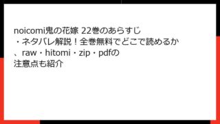 noicomi鬼の花嫁 noicomi鬼の花嫁 22巻のあらすじ・ネタバレ解説!全巻無料でどこで読めるか、raw・hitomi・zip・pdfの注意点も紹介 noicomi鬼の花嫁 22巻の魅力に迫る! 詳細あらすじと見どころ満載レビュー こんにちは、漫画好きのブロガーです! 今日は、noicomiレーベルから登場した大人気ファンタジーラブストーリー『鬼の花嫁』の22巻について、詳しくお話し... 2025.09.10 noicomi鬼の花嫁少女マンガ