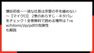 少女マンガ 懐妊初夜~一途な社長は求愛の手を緩めない~【マイクロ】 2巻のあらすじ・ネタバレをチェック!全巻無料で読める場所は?raw/hitomi/zip/pdfの危険性も解説 懐妊初夜~一途な社長は求愛の手を緩めない~【マイクロ】 2巻の魅力的なあらすじを徹底解説! こんにちは、漫画好きの皆さん! 今日は、少女漫画の新定番として話題沸騰中の「懐妊初夜~一途な社長は求愛の手を緩めない~【マイクロ】」の2巻につい... 2025.09.10 少女マンガ懐妊初夜~一途な社長は求愛の手を緩めない~【マイクロ】