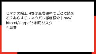 ヒマチの嬢王 ヒマチの嬢王 4巻は全巻無料でどこで読める?あらすじ・ネタバレ徹底紹介|raw/hitomi/zip/pdfの利用リスクも調査 ヒマチの嬢王 4巻 あらすじ詳細 『ヒマチの嬢王』4巻は、茅原クレセによる人気漫画で、鳥取県米子市朝日町(ヒマチ)を舞台に、元No.1キャバ嬢・一条アヤネが地元のシャッター街を活性化させる物語です。この巻では、アヤネの壮絶な過去、特に歌... 2025.08.29 ヒマチの嬢王少女マンガ