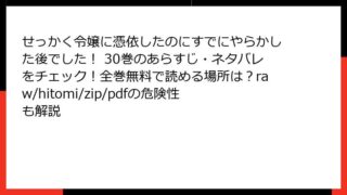 せっかく令嬢に憑依したのにすでにやらかした後でした! せっかく令嬢に憑依したのにすでにやらかした後でした! 30巻のあらすじ・ネタバレをチェック!全巻無料で読める場所は?raw/hitomi/zip/pdfの危険性も解説 『せっかく令嬢に憑依したのにすでにやらかした後でした!』30巻のあらすじ 『せっかく令嬢に憑依したのにすでにやらかした後でした!』は、沢野いずみ先生原作、BAON先生と夜田あかり先生によるフルカラーWebtoonで、異世界転生ものの中で... 2025.08.26 せっかく令嬢に憑依したのにすでにやらかした後でした!少女マンガ