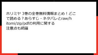 ホリミヤ ホリミヤ 3巻の全巻無料情報まとめ!どこで読める?あらすじ・ネタバレとraw/hitomi/zip/pdfの利用に関する注意点も網羅 『ホリミヤ』3巻のあらすじを徹底解説!甘酸っぱい青春と深まる絆 『ホリミヤ』は、HERO原作、萩原ダイスケ作画による青春ラブコメ漫画で、スクウェア・エニックスの「月刊Gファンタジー」に連載された人気作品です。3巻では、主人公の堀京子と宮... 2025.08.26 ホリミヤ少女マンガ