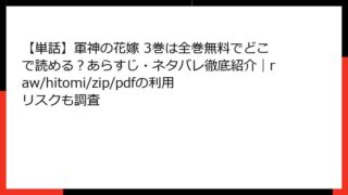 【単話】軍神の花嫁 【単話】軍神の花嫁 3巻は全巻無料でどこで読める?あらすじ・ネタバレ徹底紹介|raw/hitomi/zip/pdfの利用リスクも調査 軍神の花嫁 3巻:運命の剣と深まる絆の物語 こんにちは、漫画好きのブロガーです! 今日は、ファンタジーロマンスの傑作『軍神の花嫁』3巻のあらすじを詳しくお届けします。この作品は、凡庸な少女が軍神の妃として選ばれ、自身の力で運命を変えてい... 2025.09.09 【単話】軍神の花嫁少女マンガ