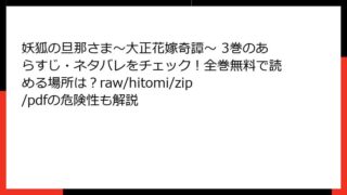 妖狐の旦那さま~大正花嫁奇譚~ 妖狐の旦那さま~大正花嫁奇譚~ 3巻のあらすじ・ネタバレをチェック!全巻無料で読める場所は?raw/hitomi/zip/pdfの危険性も解説 妖狐の旦那さま~大正花嫁奇譚~ 3巻の魅力的なあらすじ深掘り! 和風シンデレラの切ない恋が加速 こんにちは、漫画好きのブロガーです! 今日は、大正時代を舞台にした和風ファンタジーロマンスの傑作、『妖狐の旦那さま~大正花嫁奇譚~』の3巻に... 2025.09.09 妖狐の旦那さま~大正花嫁奇譚~少女マンガ