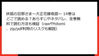 妖狐の旦那さま~大正花嫁奇譚~ 妖狐の旦那さま~大正花嫁奇譚~ 14巻はどこで読める?あらすじやネタバレ、全巻無料で読む方法も検証(rawやhitomi、zip/pdf利用のリスクも解説) 妖狐の旦那さま~大正花嫁奇譚~ 14巻の魅力に迫る! 詳細あらすじレビュー みなさん、こんにちは! 今日は、大人気の和風ファンタジーロマンス漫画『妖狐の旦那さま~大正花嫁奇譚~』の14巻について、詳しくお話ししていきたいと思います。この... 2025.09.09 妖狐の旦那さま~大正花嫁奇譚~少女マンガ