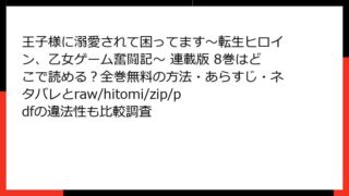 少女マンガ 王子様に溺愛されて困ってます~転生ヒロイン、乙女ゲーム奮闘記~ 連載版 8巻はどこで読める?全巻無料の方法・あらすじ・ネタバレとraw/hitomi/zip/pdfの違法性も比較調査 王子様に溺愛されて困ってます~転生ヒロイン、乙女ゲーム奮闘記~ 連載版 8巻の魅力に迫る! 詳細あらすじレビュー こんにちは、マンガ好きのブロガーです! 今日は、R18系乙女ゲーム転生ものとして大人気の作品『王子様に溺愛されて困ってます... 2025.09.09 少女マンガ王子様に溺愛されて困ってます~転生ヒロイン、乙女ゲーム奮闘記~ 連載版