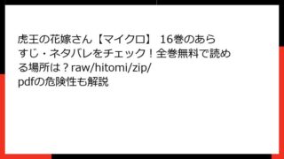 少女マンガ 虎王の花嫁さん【マイクロ】 16巻のあらすじ・ネタバレをチェック!全巻無料で読める場所は?raw/hitomi/zip/pdfの危険性も解説 虎王の花嫁さん【マイクロ】 16巻の魅力に迫る! 切ない新婚ラブの最新展開を深掘り こんにちは、マンガ好きの皆さん! 今日は、原田唯衣先生の人気作『虎王の花嫁さん【マイクロ】』の16巻について、詳しくあらすじを語っていきたいと思います。... 2025.09.09 少女マンガ虎王の花嫁さん【マイクロ】