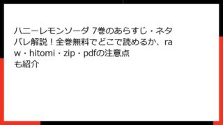ハニーレモンソーダ ハニーレモンソーダ 7巻のあらすじ・ネタバレ解説!全巻無料でどこで読めるか、raw・hitomi・zip・pdfの注意点も紹介 ハニーレモンソーダ 7巻:片想いの果てに訪れた甘酸っぱい瞬間 皆さん、こんにちは! 少女漫画好きのブロガーです。今日は、村田真優先生の人気作『ハニーレモンソーダ』の7巻について、詳しくあらすじを語っていきたいと思います。この作品は、中学... 2025.09.09 ハニーレモンソーダ少女マンガ