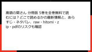 少女マンガ 高嶺の蘭さん 分冊版 5巻を全巻無料で読むには?どこで読めるかの最新情報と、あらすじ・ネタバレ、raw・hitomi・zip・pdfのリスクも確認 高嶺の蘭さん 分冊版 5巻 あらすじ詳細 「高嶺の蘭さん」は、餡蜜による人気少女漫画で、クールビューティーなヒロインと花屋の息子のピュアなラブストーリーが魅力です。分冊版の5巻では、主人公・蘭と晃の関係がさらに深まり、過去や新たなライバ... 2025.09.07 少女マンガ高嶺の蘭さん 分冊版