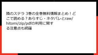 少女マンガ 隣のステラ 3巻の全巻無料情報まとめ!どこで読める?あらすじ・ネタバレとraw/hitomi/zip/pdfの利用に関する注意点も網羅 『隣のステラ』3巻のあらすじを詳しく解説!切ない恋の転機 『隣のステラ』は、餡蜜による人気少女漫画で、講談社「別冊フレンド」にて連載中の作品です。芸能人として活躍する幼なじみの柊木昴(スバル)と、普通の女子高生・天野千明の“遠くて近い”... 2025.09.07 少女マンガ隣のステラ