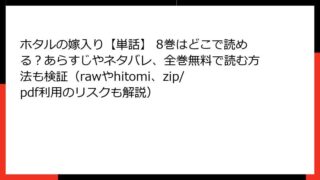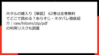 ホタルの嫁入り【単話】 ホタルの嫁入り【単話】 8巻はどこで読める?あらすじやネタバレ、全巻無料で読む方法も検証(rawやhitomi、zip/pdf利用のリスクも解説) 『ホタルの嫁入り【単話】 8巻』の魅力に迫る! 詳細あらすじと読みどころを徹底解説 こんにちは、漫画好きのブロガーです! 今日は、橘オレコ先生の人気ラブサスペンス『ホタルの嫁入り』の単話版8巻について、詳しくお話ししたいと思います。この... 2025.09.07 ホタルの嫁入り【単話】少女マンガ