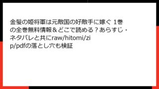 少女マンガ 金髪の姫将軍は元敵国の好敵手に嫁ぐ 1巻の全巻無料情報&どこで読める?あらすじ・ネタバレと共にraw/hitomi/zip/pdfの落とし穴も検証 「金髪の姫将軍は元敵国の好敵手に嫁ぐ」1巻のあらすじを徹底解説 「金髪の姫将軍は元敵国の好敵手に嫁ぐ」は、羽鳥紘による大人気ライトノベルを原作とし、森川いくが作画を担当したコミカライズ作品です。DIANA文庫から出版されたこの物語は、勇... 2025.09.07 少女マンガ金髪の姫将軍は元敵国の好敵手に嫁ぐ
